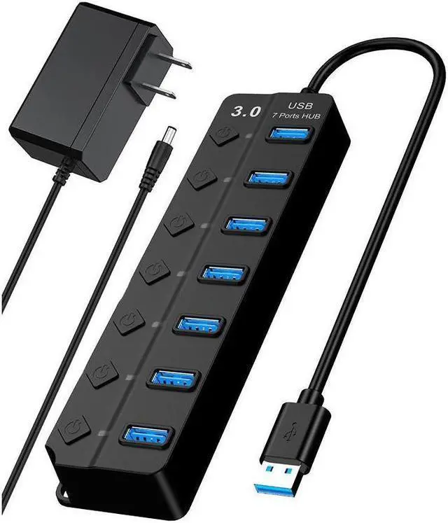 IXJYLCPC USB Hub 3.0 Powered, 7 Ports USB 3.0 Data Hub Splitter with (5V DC) Power Adapter and Individual On/Off Switches USB Port Expander for PC and Laptop (7IN1HUB)