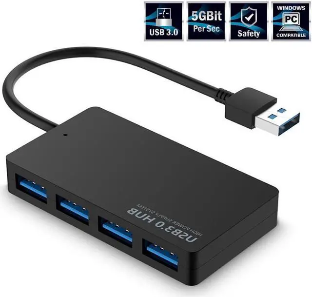IXJYLCPC USB 3.0 Data Hub 4 Ports USB 3.0 Hub, USB Portable Multi-Port Expansion Hub Compatible with MacBook, Windows, mac OS, Linux, USB Flash Drives, Mobile HDD etc, Black