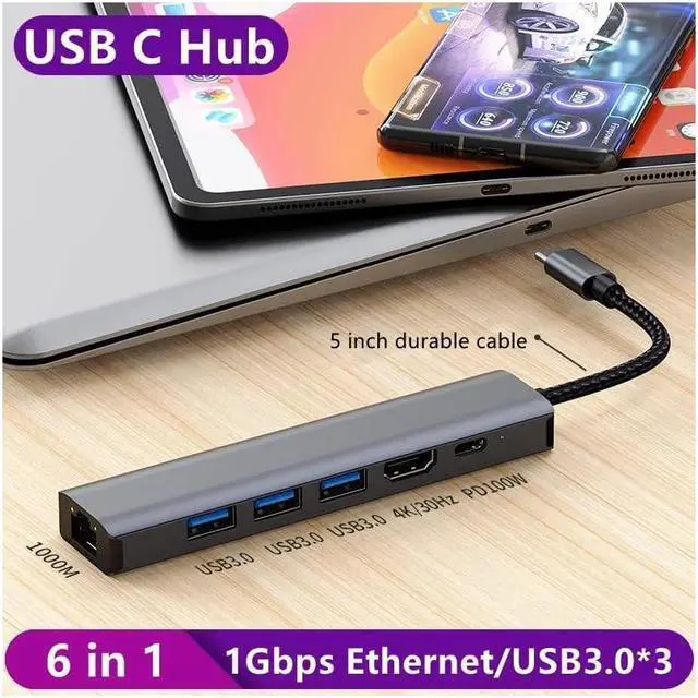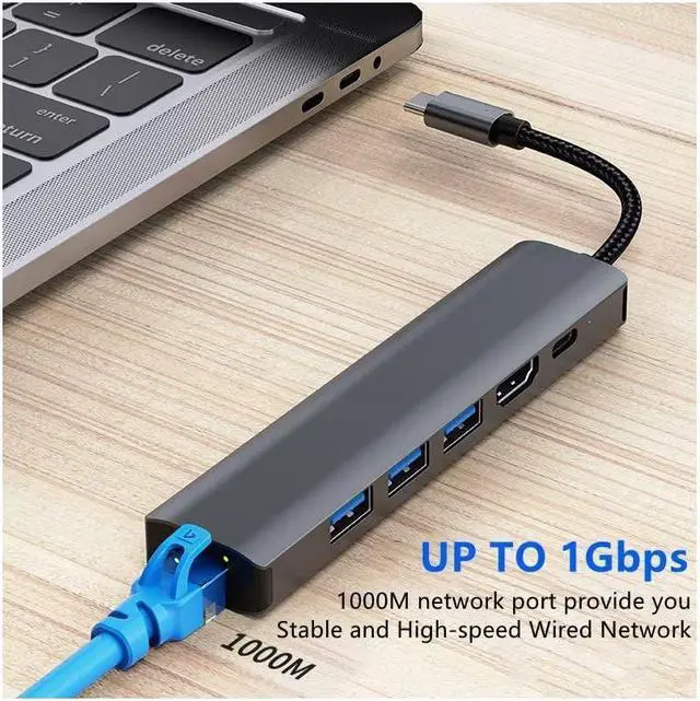 Multi-functional Expansion: This Type-C laptop converter docking station offers a wide range of interfaces, including 1 USB C PD port, 3 USB 3.0 ports, 1 HDMI port, 1 Gigabit Ethernet port, meeting various needs for your daily work and entertainment.