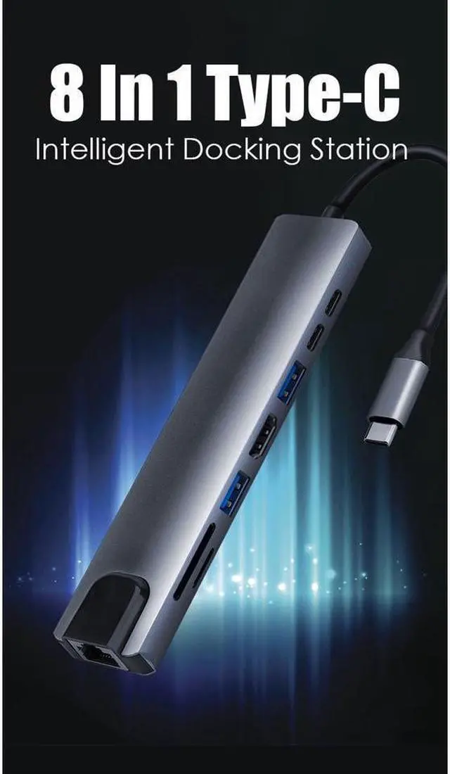 XJYLCPC USB C Hub Multiport Adapter, 8-in-1 Type C Hub with RJ45 Port, USB3.0/2.0 Port,4K HDMI,SD/TF Card Port,87W PD, Type-C Port Docking Station, Compatible for MacBook Pro and Type C Devices