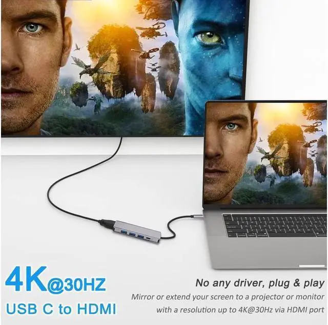 USB C Hub: USB C to HDMI multiport adapter equipped with 1*4K HDMI port, 1*USB 3.0 ports, 2*USB 2.0 ports, 1* USB-C 100W PD, Works well with most USB-C laptop, MacBook Pro/Air and other USB-C port devices.