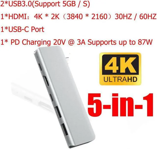 • Support 87wPD fast charging, make the computer full at any time, USB 3.0 high-speed fast transmission, transmission rate up to 5Gbps, transmission of 1G files only takes 5-12 seconds.