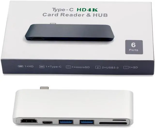 • 6 in 1 Thunderbolt to USB C Hubs Adapter can support high speed data transmission,pass-through charging,microSD / SD card reader,and have two USB 3.0 extension ports.