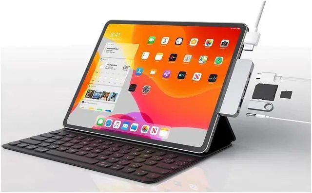 XJYLCPC USB C Hub Adapter for 2018 2020 iPad Pro 12.9"11"10.9"iPad Air 4 6-in-1 Mini Type C Hub with USB C to HDMI 4K@30Hz PD Charging&Data USB3.0 3.5mm Headphone Jack,SD/Micro Card Reader