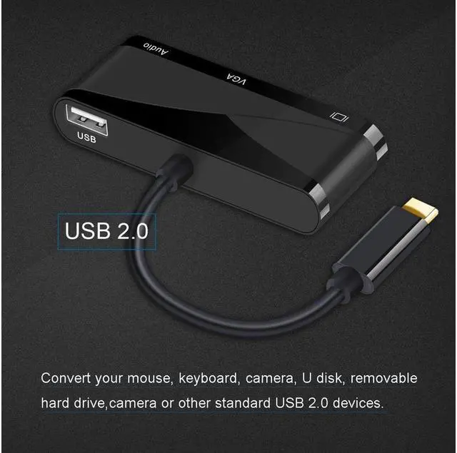 USB Type C(USB 3.1 ) to HDMI + VGA Converter with 3.5 mm Audio+USB 2.0