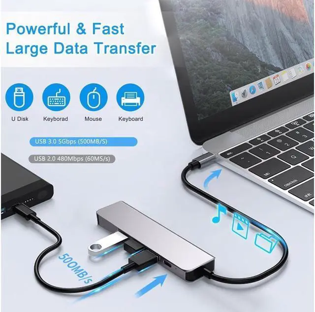 [Super Speed 5Gbps Data Transfer] This usb c dock allows you to connect keyboard, Mouse, hard drive, etc to MacBook Pro, up to 5Gbps data transmission speed via USB 3.0 port. Which is 10x faster than USB 2.0 (480 Mbps).