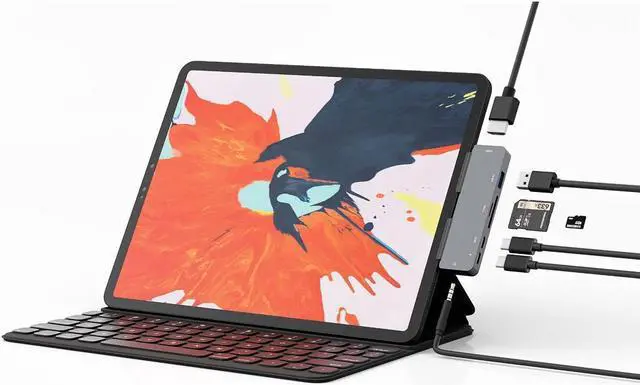 XJYLCPC iPad Pro USB C Hub, iPad Pro 2018 2019 2020 12.9/11 Inch Adapter, 7-in-1 iPad Pro Dongle with 4K HDMI, USB-C PD Charging&Data, SD/Micro Card Reader, USB 3.0 & 3.5mm Headphone Jack