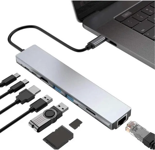 Experience Lightning-Fast: Upgrade your connectivity with our USB-C hub's 5Gbps data transfer and 100M Ethernet port. With lightning-fast transfer speeds and reliable internet connectivity, you can seamlessly stream movies, download large files, and more.