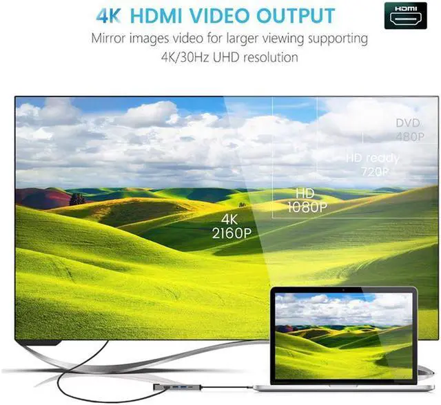 1 x HDMI Port: 4K@30Hz, 4K UHD Resolution, directly stream 4K (3840x2160@30Hz) UHD or Full HD 1080p video to HDTV, monitors, or projectors, and never worry about blur, distortion and delay.
