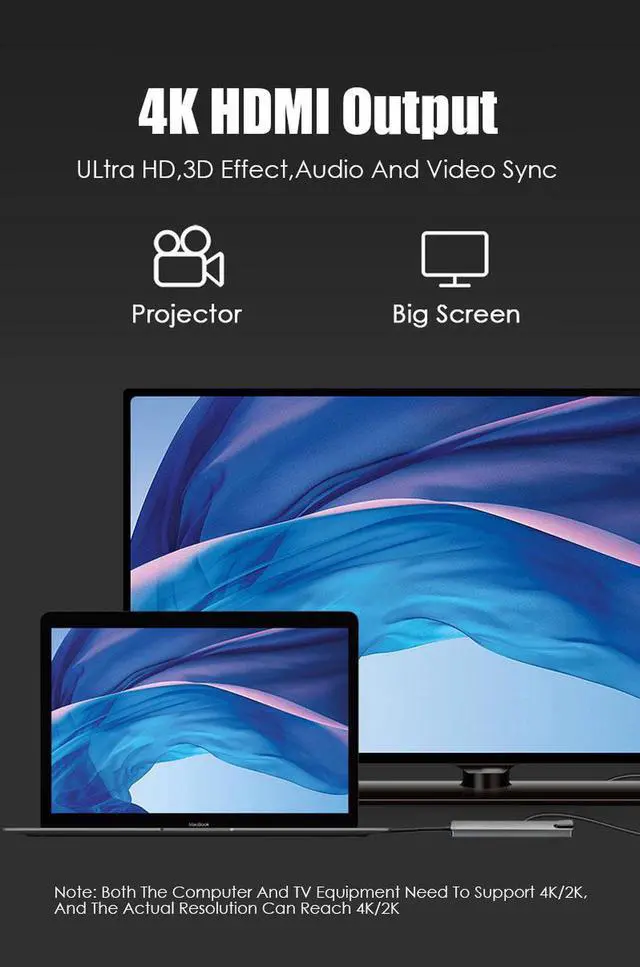 Supports to charge and transmit data for the USB device simultaneously 4K HDMI Port