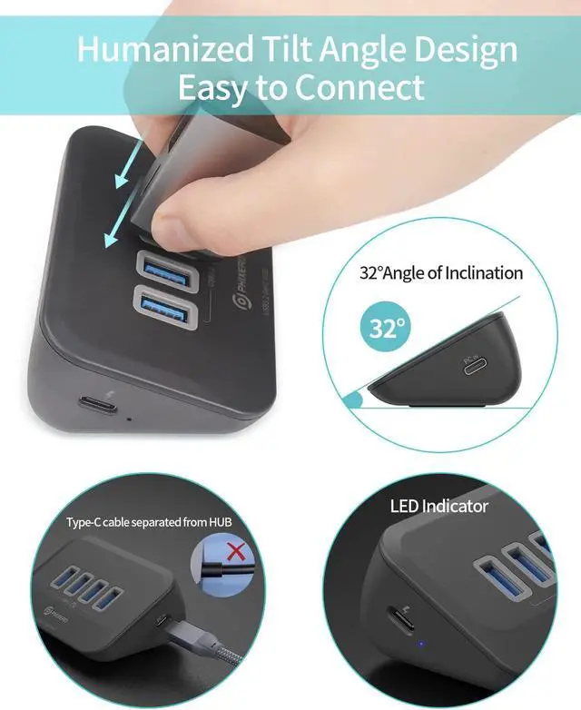 Sleek & Easy to Use - Ergonomic angled design allows you to easily plug and unplug USB devices. Non-hardwired, replaceable input cable design allows you to better adjust cable length and extend life. and the slim body allows USB multiport hub to fits easily into your backpack for easy portability.