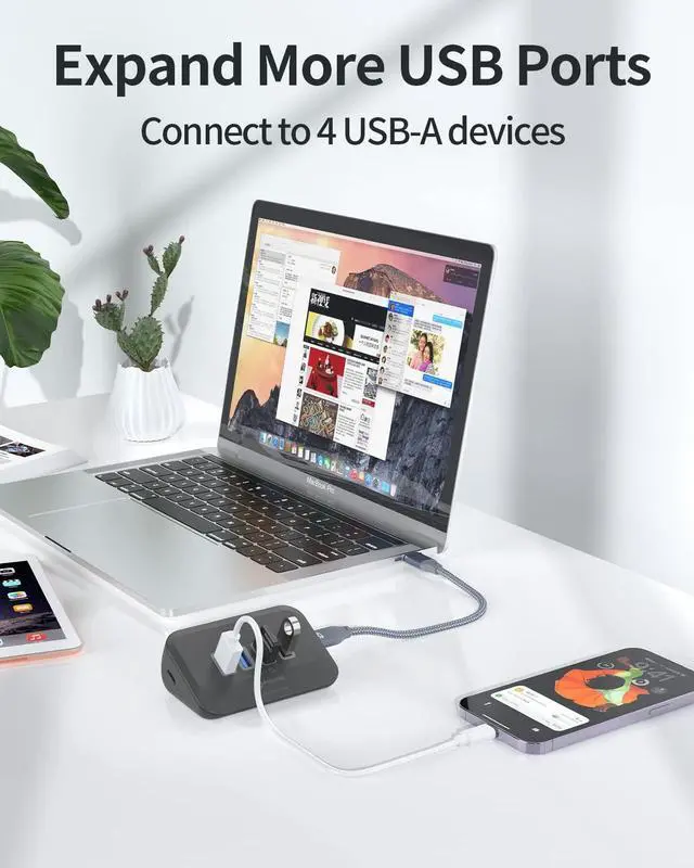 4 in 1 USB C Hub - This USB C hub can expand your laptop or desktop single USB-A/C port to 4 standard USB 3.1 Gen 2 ports. With built-in OTG function chip, easily connects with keyboard, mouse, hard drives and many other USB devices to your USB-C phone or tablet. Support Windows, Mac OS, Linux.