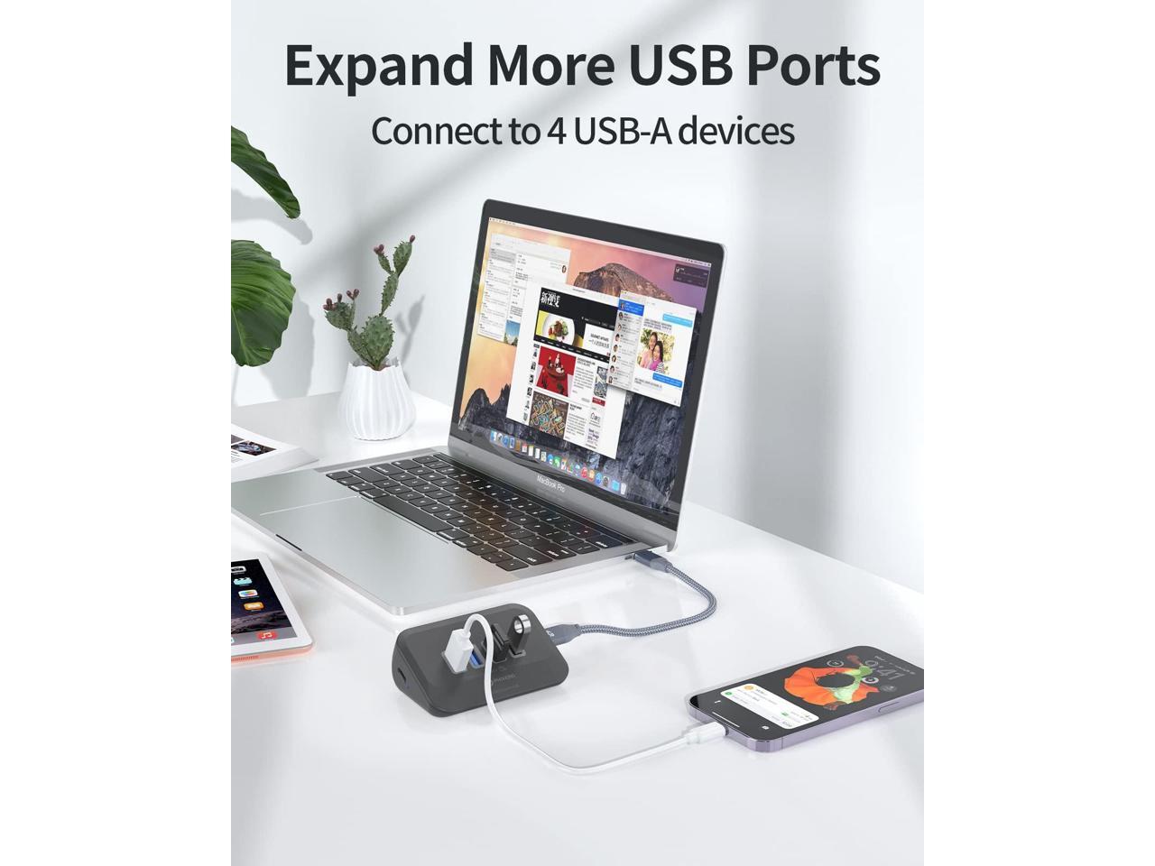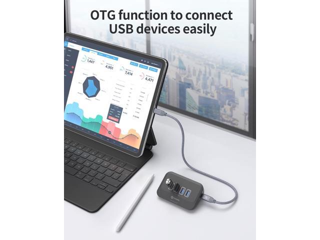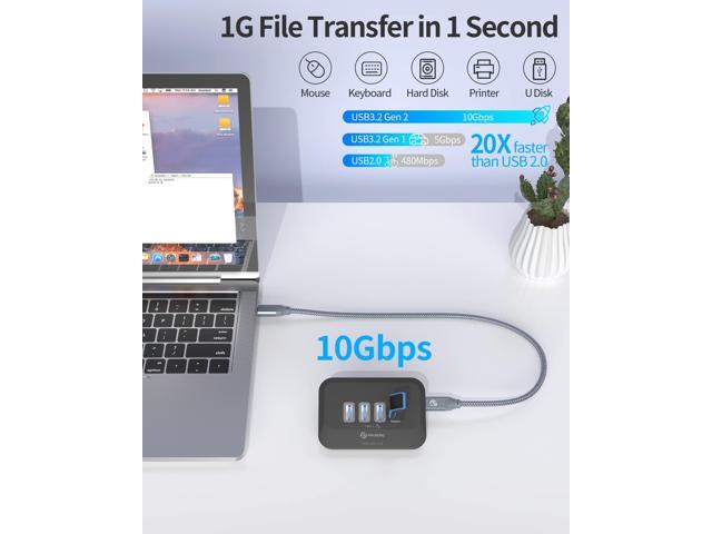 - 4 in 1 USB C Hub - This USB C hub can expand your laptop or desktop single USB-A/C port to 4 standard USB 3.1 Gen 2 ports. With built-in OTG function chip, easily connects with keyboard, mouse, hard drives and many other USB devices to your USB-C phone or tablet. Support Windows, Mac OS, Linux.