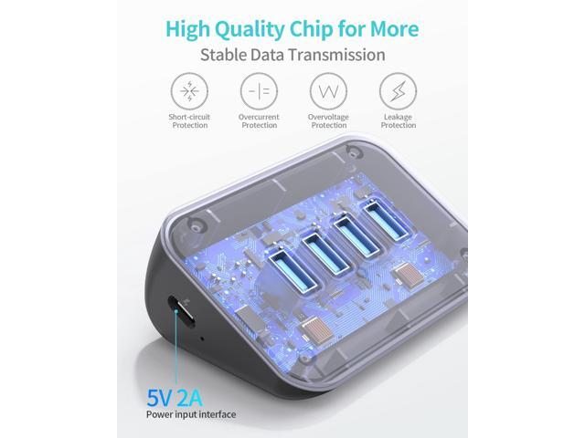 - Safe, Stable & Anti-interference - Built-in industrial grade chip avoids overcurrent, overvoltage, short circuit and high temperature. Excellent effect on EMI, ESD, 2.4G and WIFI anti-interference shielding. With a 5V2A USB-C power input interface to ensure stable data transmission (The power adapter is not included, this is a data hub not recommended for charging).
