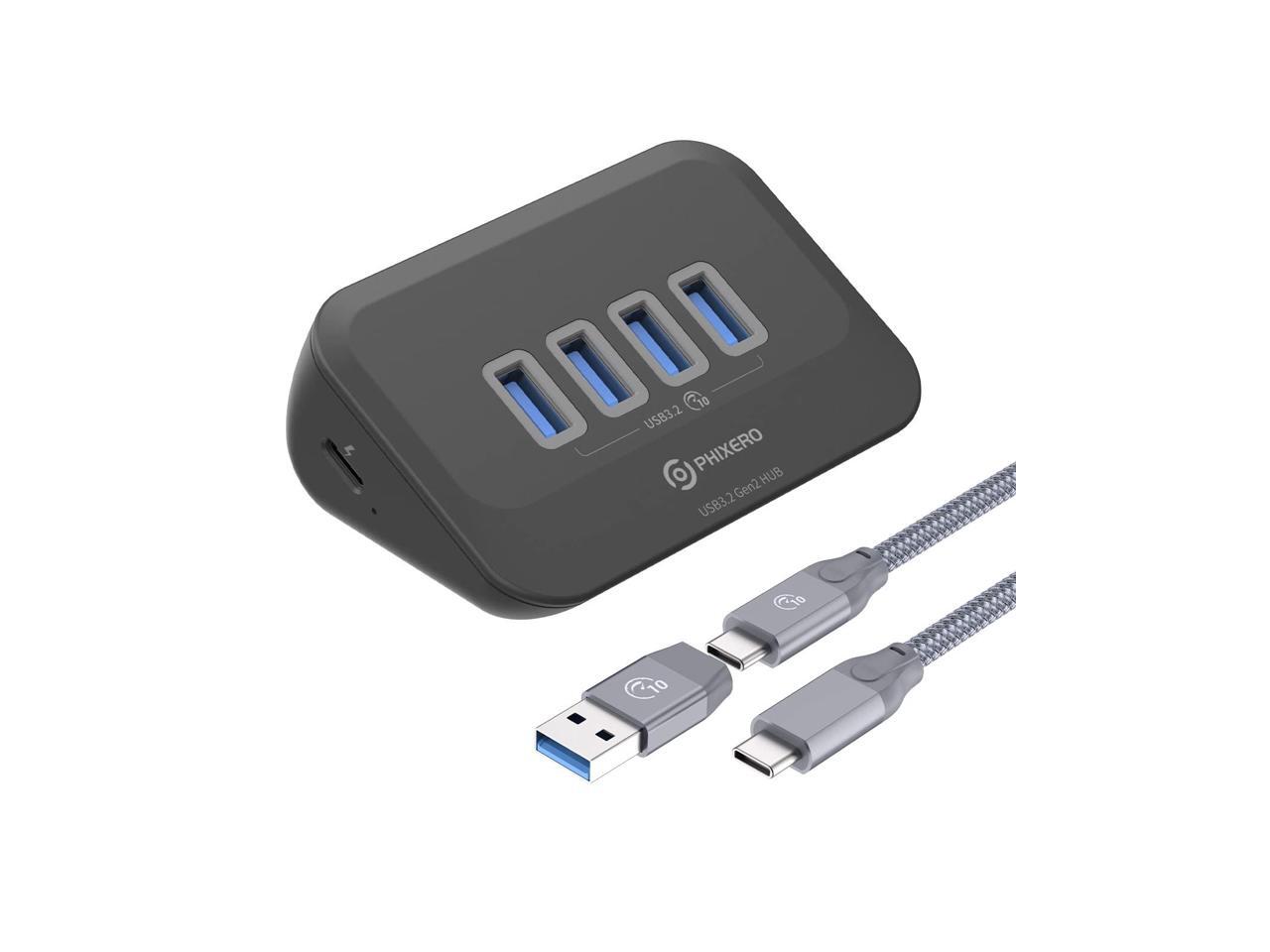 PHIXERO USB Port Hub 10Gbps, 4 Ports USB 3.2 Hub, High-Speed USB 3.2 Gen 2 Portable USB Splitter, USB Hub for Laptop, PC, iMac, MacBook, Playstation, Xbox 2 in 1 Cable 50cm/1.6ft