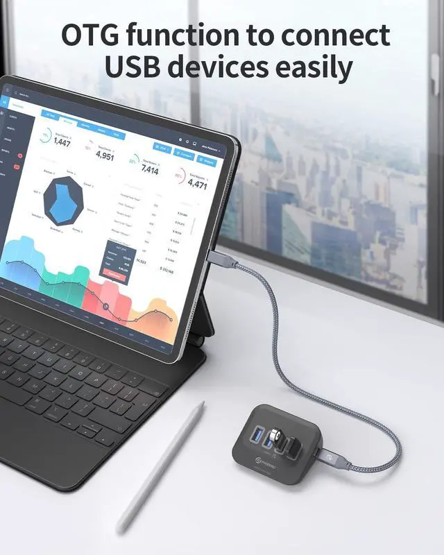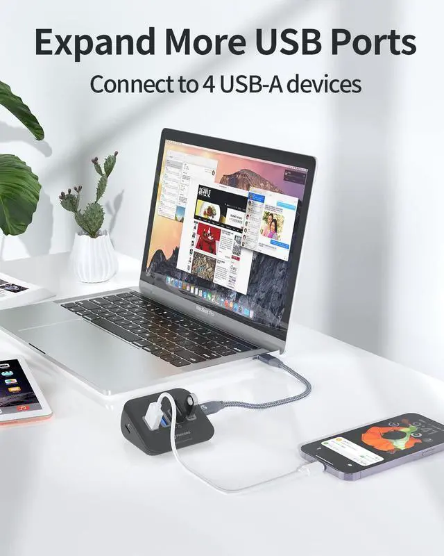 4 in 1 USB C Hub - This USB C hub can expand your laptop or desktop single USB-A/C port to 4 standard USB 3.2 Gen 1 ports. With built-in OTG function chip, easily connects with keyboard, mouse, hard drives and many other USB devices to your USB-C phone or tablet. Support Windows, Mac OS, Linux.