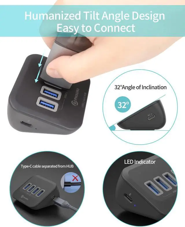 Sleek & Easy to Use - Ergonomic angled design allows you to easily plug and unplug USB devices. Non-hardwired, replaceable input cable design allows you to better adjust cable length and extend life. and the slim body allows USB multiport hub to fits easily into your backpack for easy portability.