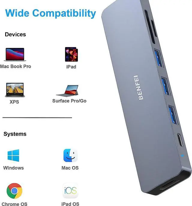 Instant Expansion: Add 1 * HDMI port, 3 * USB 3.0 ports, 1 * micro SD card slot, 1 * SD card slot, 1 * 100W PD Ports to your USB-C laptopall from a single USB-C port. Tuck this lightweight gadget into bag to do a business presentation, or extend your desktop screen.