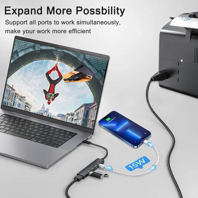 Hub: This USB 3.0 Hub extends your device with 4 additional USB A ports, backwards compatible with USB 2.0 / 1.1. ideal for connecting USB peripherals such as flash drive, mouse, keyboard, printer. No need to install drivers, plug and play. Its very portable, suitable for business travel.