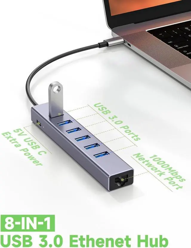8-ports at Same TimeThis USB C to USB A 3.0 hub can easily expand one of your computers USB ports into 8 port. Support 6 usb 3.0 ports to work at the same time, without any pressure, and keep the temperature in the middle range. Plug and play, no need driver, easy to use.