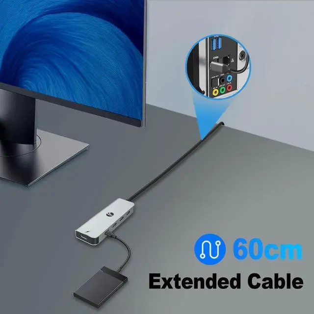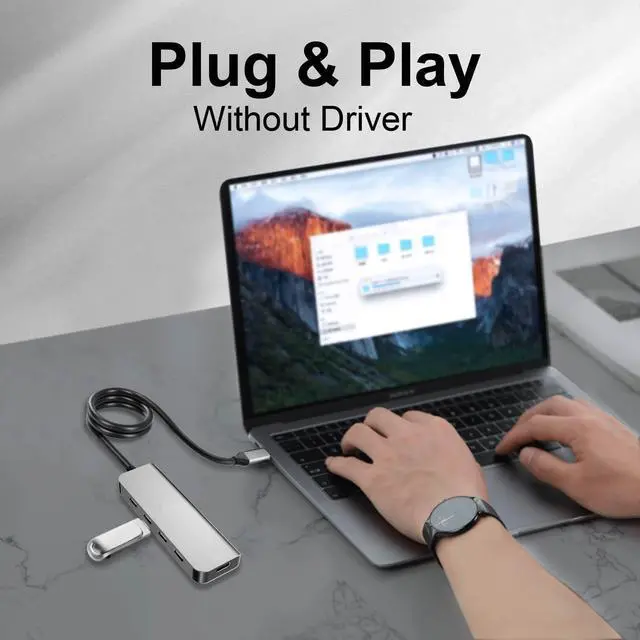 Plug & PlayThe usb c hub multiport adapter comes with 60cm cable, meeting many practical scenarios. It can be connected to laptops, mobile phones, tablets, etc. The Type C splitter is compatible with all devices with USB-C port, and support OTG, no additional drivers are needed. Compatible with M2/M1 MacBook Pro, Mac OS, M2/ M1 iPad Pro, M2/M1 MacBook Air, iMac, Dell, HP, Samsung, Windows, Windows, Android and more.