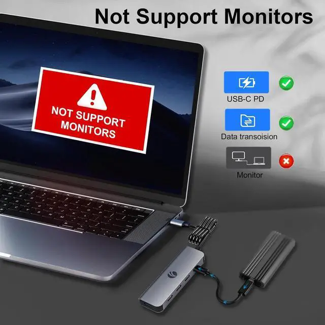 100W PD ChargingUSB C adapter supports up to 87W pass-through charging. Powering your laptop while using usb c multiport adapter to transfer data greatly improves the stability of data transfer.