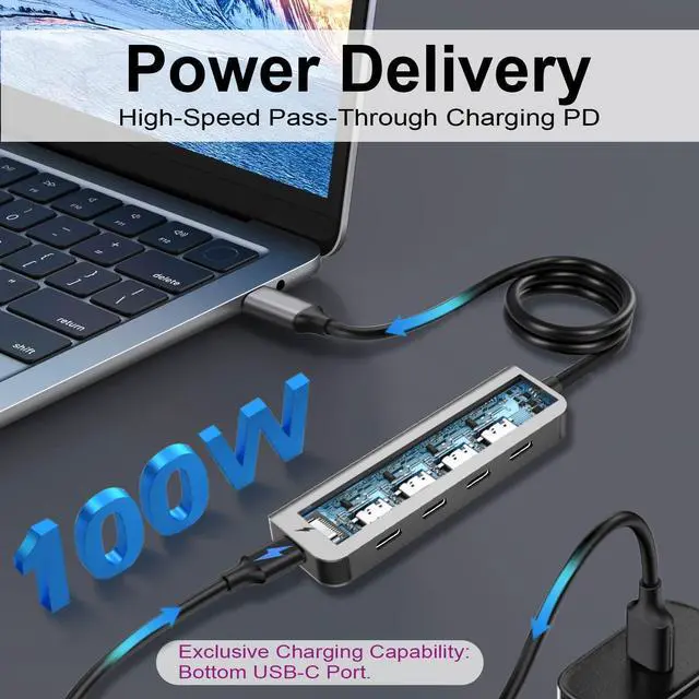 5 Port USB C Adapter VCOM USB C Hub has 4 USB C data ports and 100W usb c hub powered to meet your daily needs. usb c port expander can connect more TYPE-C Port devices to your laptop.
