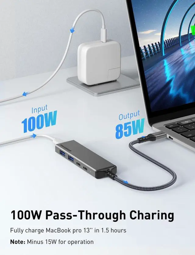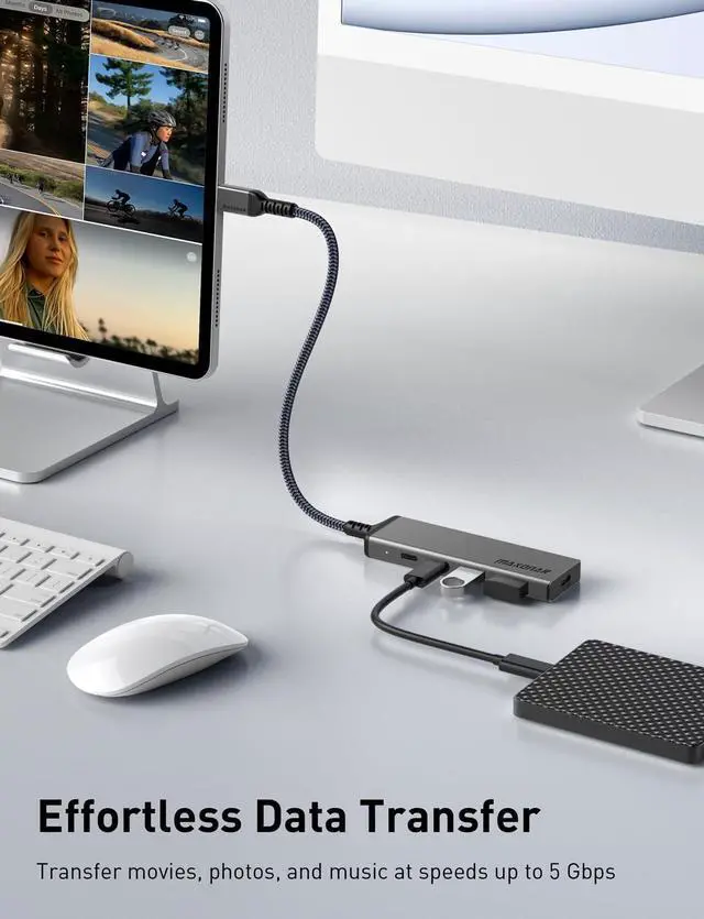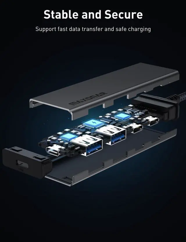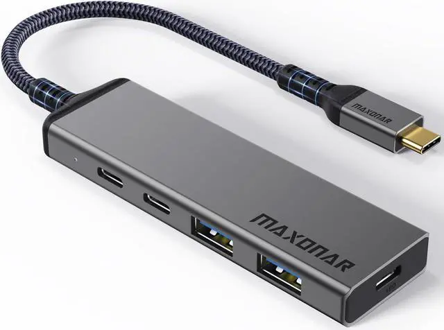 5-in-1 DesignMaxonar USB C hub for laptop with a 100W PD-IN port, 2* 5Gbps USB-C data port, 2* 5Gbps USB-A ports, excellent connectivity to satisfy all your expansion needs at once, much higher efficiency at work.