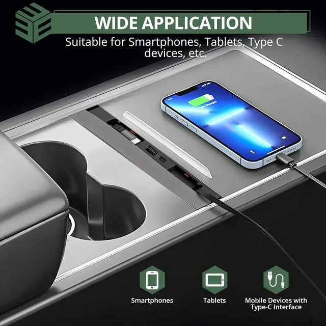 Fast Charging: The LED USB hub Compatible with Tesla Model 3, ModelY, easily identify mobile devices and provide charging efficiency, faster than on-board wireless charging, saving more time for your travel