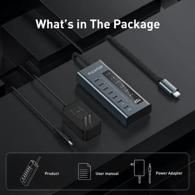 USB C HUB: PULWTOP 7 in 1 USB C TO USB C HUB includes 6 USB C 10Gbps data transmission ports and 1 x10Gbps USB C Data Transfer & Fast Charging Port, allowing you to easily backup files, transfer images, etc. from external devices with high transfer speed Up to 10Gbp.