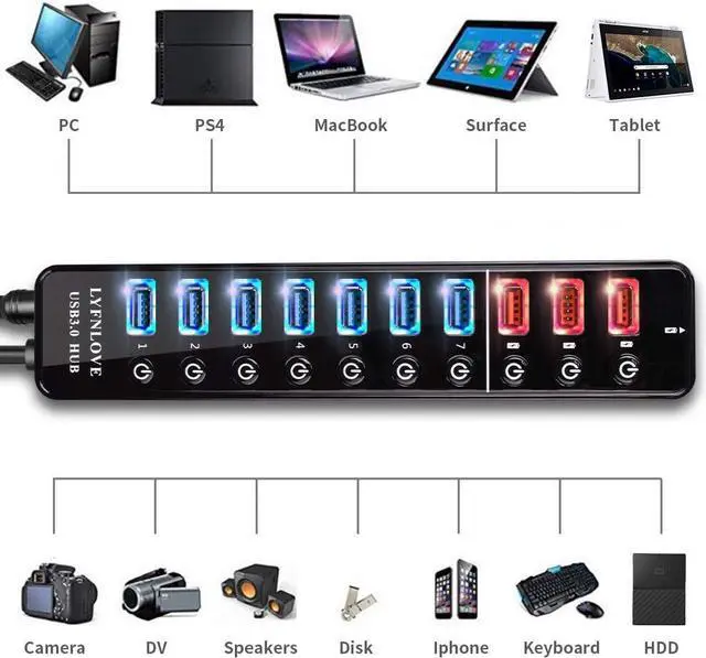 Easy to Use and Durable: LYFNLOVE USB hub is plug and play, no downloads or CD required. built-in multi protection, safe and durable