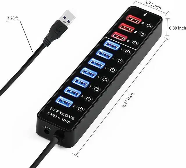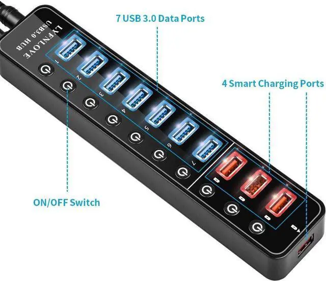 Individual On/Off Power Switches: Our USB port hub with power switch and LED indicator for each port, allowing to control each port independently, turn on/off the USB ports at your need. each switch remembers the on/off config
