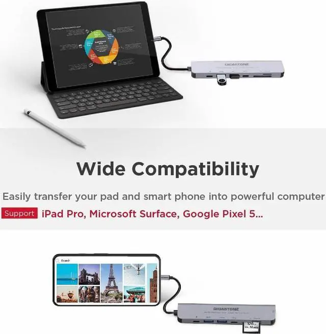 • [Manufacturer Guaranteed] Gigastone 1 year after-service. *According to USB3.0 protocol specification, there will be signal interference when using 2 wireless devices on 2 USB-A ports at same time, which will cause transmission lag. We suggest customers to use 2 wireless devices on 2 USB-C ports or 1 wireless device connected to USB-A and 1 wireless device connected to USB-C.