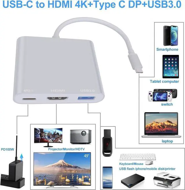 USB C HUB: USB Type-C to HDMI 4K+USB-C PD65W+USB 3.0 multiport adapter, three ports can work simultaneously, small size, easy to carry in your pocket. Convenient for home theater entertainment, office, presentation, exhibition, teaching, etc.
