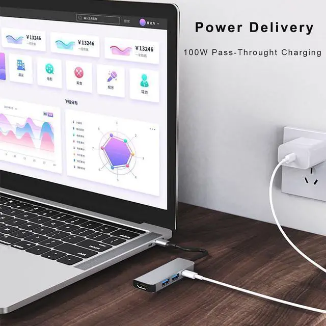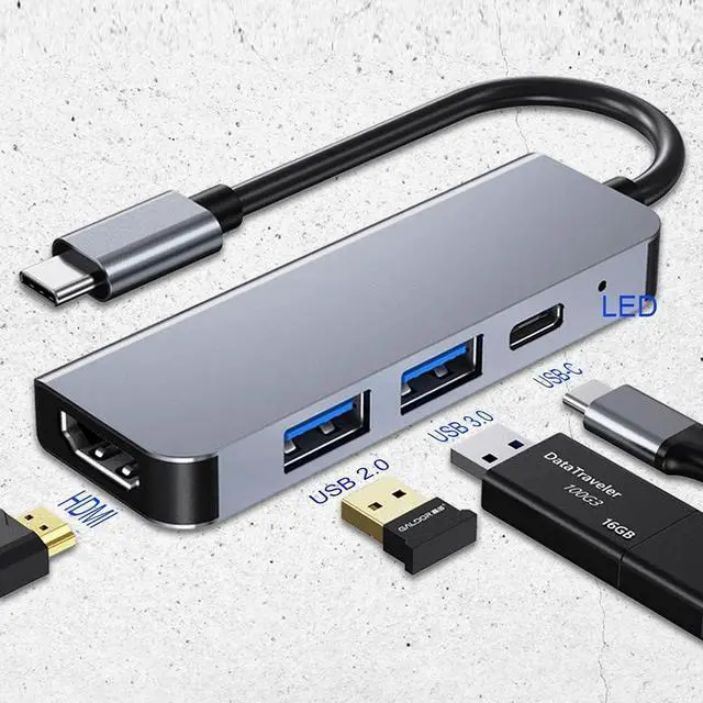 Plug and Play, this USB-C to HDMI multiple adapter designs with USB-C to 1 x HDMI output, 1 x USB 3.0, 1 x USB 2.0 ouput and 1 x PD charging (power delivery) port. The USB 3.0 Port max output current is 0.9A only, that it can' t connect high power consumption devices, such as External Hard Driver/CD-ROM/DVD-ROM. And we don' t recommend use the USB 3.0 port for charging too, as the charging speed will be slow.