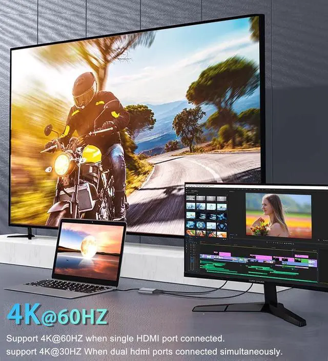 4K@ 60HZ UHD: While single use one HDMI port resolution up to 4K@60Hz, dual monitor with HDMI at 2x 4K@30Hz(3840x2160@30Hz). with this high-performance USB-C adapter, it will achieve real-time transmission of high-definition images without delay, very suitable for gaming enthusiasts, professional draftsmen and video editors.. (Important: ONLY when your devices support 4K resolution, the video output will be 4K, please make sure to use a HDMI 2.0 cable or better).