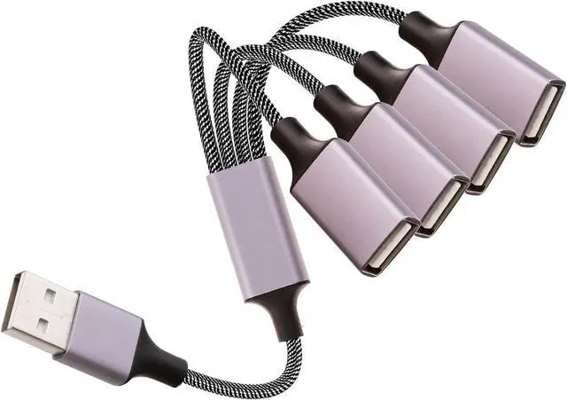 usb splitter 1 in 4 out: With this USB A plitter, you can add four USB A ports with one cable, saving you space and no extra cable tangles. The usb y splitterr features a cable with a double braided nylon and aluminum casing. They are highly resistant to everyday twists and bends and do not tangle easily.