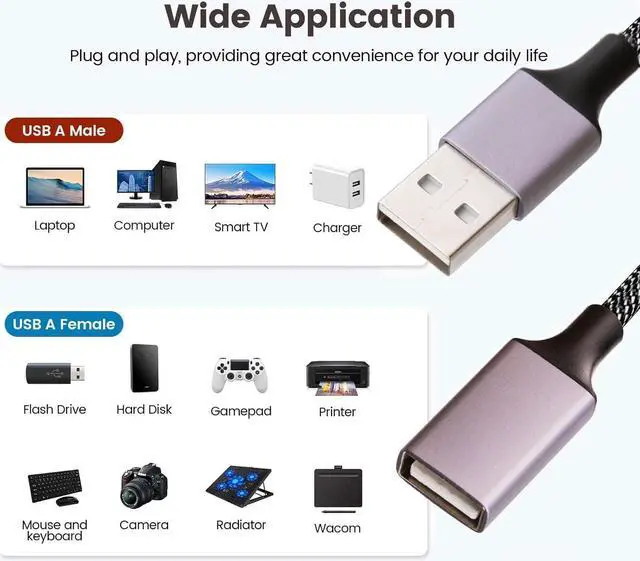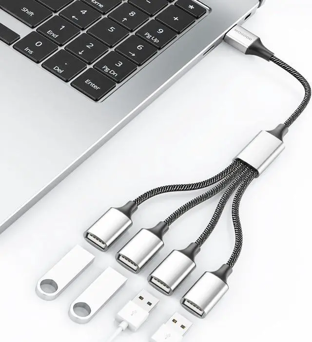 Convenience: Are you still looking for more ports because your device only comes with one of the USB-A? Come and learn about this USB-A to four USB-A splitter. It uses a USB-A plug to turn one USB-A port into four, which is very convenient and you can easily connect USB-A accessories to devices that don' t have enough USB ports.