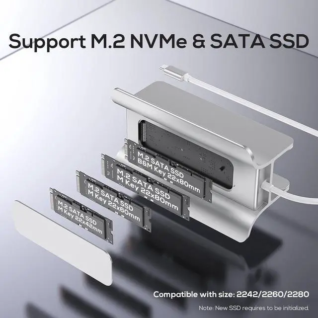 SSD expansion: Mac Mini Dock supports SSD expansion, you can use this USB Hub to expand the external solid-state hard drive to meet the insufficient storage needs of Mac Mini. The USB-C HUB supports M. 2 PCIe NVMe SSD 16Gbps interface, compatible with M. 2 NVMe SSD or M. 2 SATA SSD 6Gbps, 2242/2260/2280 size M. 2 SSD.
