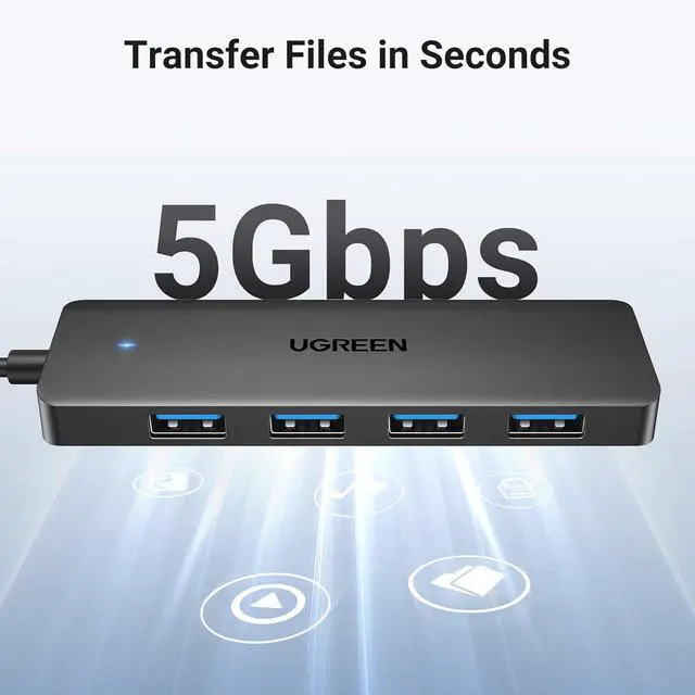 Transfer Files in Seconds: The USB 3.0 Hub supports a max file transfer speed of 5Gbps. That's fast enough to transfer a 10 GB file in just 16.4 seconds