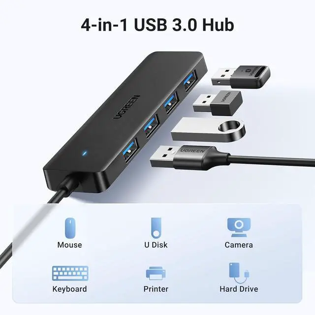 USB Ports Expansion: This USB Hub turns 1 USB A port into 4 USB A ports with your devices for mouses, keyboards, U disks, flash drives, and more USB Peripherals. Greatly improve your work efficiency