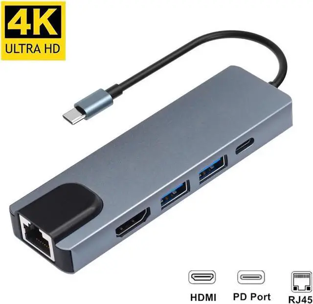 4K USB C Hub to Gigabit Ethernet Rj45 Lan 5 in 1 USB Type C Hub Adapter for Mac book Pro Thunderbolt 3 USB-C Charger PD