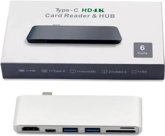 6 in 1 Thunderbolt to USB C Hubs Adapter can support high speed data transmission,pass-through charging,microSD / SD card reader,and have two USB 3.0 extension ports.