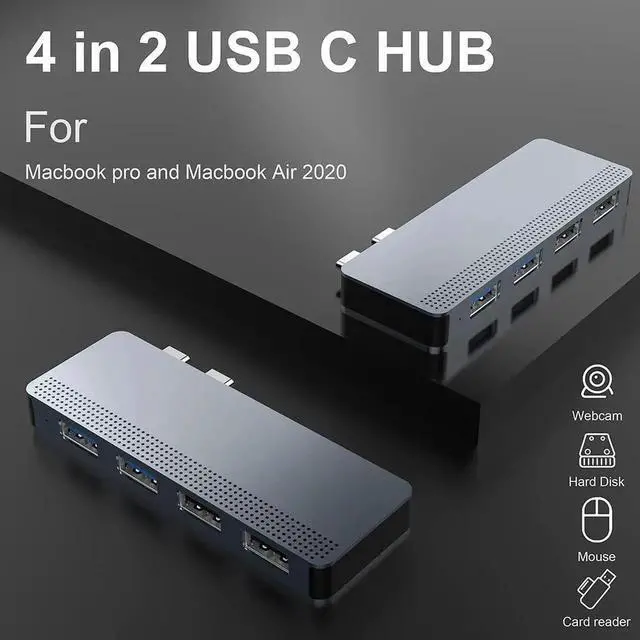 MacBook Pro/Air: USB C hub in lightweight design made of aluminium. Expand your MacBook ports into 2 USB 3.0 + 2 USB 2.0, this MacBook adapter is an ideal extension for 13.3 inch or 15.4 inch MacBook Air 2018 / 2019 / 2020 & MacBook Pro 2016 / 2017 / 2018 / 2019 / 2020: Not suitable for MacBook Air/Pro with case.