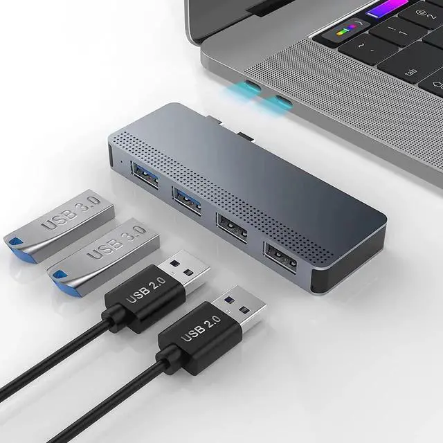 Super speed data transfer: USB C 3.0 adapter for MacBook Pro with 2 x super speed USB 3.0 ports allows you to transfer data at 5 Gbps and saves time. And with 2 x USB 2.0 k, you can connect a keyboard, mouse or hard drive to the MacBook.