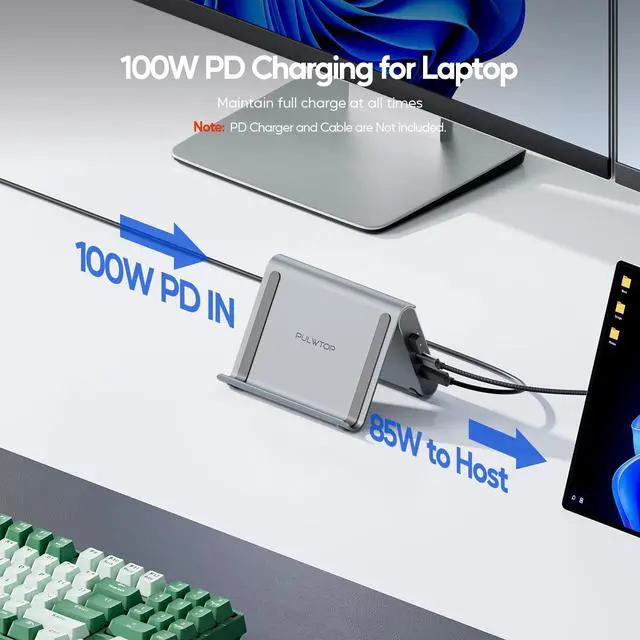 (6) Compatible with Microsoft Surface Pro 11/10/9/8 (Dual Monitor) Windows Laptop with thunderbolt 3/4 port or full-featured usb c port that supports data, video and charging. Due to the limitations of the Surface Pro, only supports single monitor for Microsoft Surface Pro 7/7+/X. For the laptop stand function, as the max width of stand slot is 18mm, the thickness of your laptop should be Thinner than 18mm.