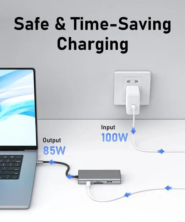 (3) 100W PD Fast Charging: thunderbolt 3 dock provides one type-C charging port which could fast charge laptops, quickly charge your computer while you use all the other features of the hub, no need to worry about losing laptop's power when usb c docking station fully loaded.