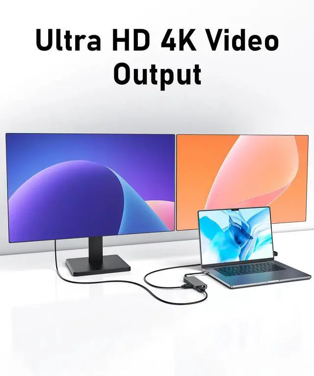 USB C HUB Dual HDMI: MI port and you can enjoy Ultra HD (4K60Hz) high definition audio instantly. Docking Station Dual Monitor can easily connect your Windows computer to 2 external monitors to achieve triple-monitor displays. You can do different project on different monitors which provide you more space for work, good for home office.