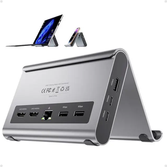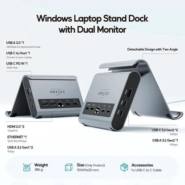 2 in 1 Docking Station with StandThis docking station for microsoft surface not only can meet the various needs of users, but also meet the tablet stand function (improve desktop utilization). The demolished bracket is enough to act as a laptop bracket to help increase space, create more working space, and increase productivity.NOTE:Due to the different thickness of Windows Laptops (Not Exceed 18mm), some laptops do not support the stand function.