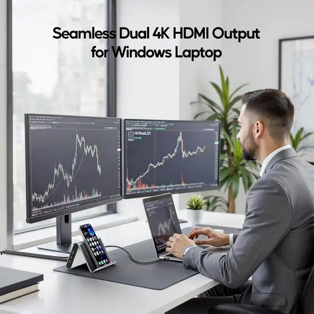 Gigabit Ethernet & PD ChargingThe RJ45 Gigabit Ethernet port provides stable, high-speed wired internet, to download movies faster and enjoy gaming without lag. while the USB-C PD port of laptop docking station dual monitor supports up to Max 100W input & Max 85W safe output into your laptop. This usb-c docking station is compatible with most Thunderbolt 4/3, USB4, and full-featured USB-C Windows / ChromeOS laptops(support Power Delivery, Data Transfer and Display Alt Mode).